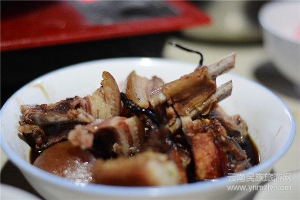 “琵琶肉”,是一種用傳統(tǒng)腌制方法制作而成的肉制品。在怒族人過大年三十時(shí),豐盛的晚餐桌上總會有一道肉色油亮鮮紅、肉味濃烈香鮮、非常可口的腌肉,也就是怒族人制作的琵琶肉。琶琵肉腌制方法是:將宰殺后的豬刮毛洗凈,開膛取出內(nèi)臟,剔去骨頭。然后撒上用花椒、胡椒、草果、鹽等調(diào)制的佐料面,還要抹上燒酒。用線把刀口縫好。在豬耳朵里各塞上一個(gè)核桃,在豬鼻孔里也各插一根粗細(xì)剛好能塞嚴(yán)鼻孔的小木棍。放幾天之后,取出木棍,灌一些鹽水進(jìn)去,再塞嚴(yán)木棍。同時(shí)在針線縫合處涂上一些核桃油。如此反復(fù)數(shù)次后,就可放在火塘篾笆上熏或晾在房頭,等到干了之后即成一具完整的琵琶肉。一般情況下,頭年腋制的琵琶肉要到大年三十晚上才食用。