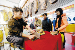 在省科技館的年貨街上,市民正在購置年貨。記者杜文蕾攝
