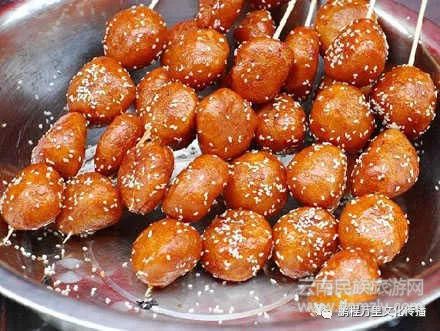 三大炮是著名的四川地區(qū)傳統(tǒng)特色小吃,主要由糯米制成,由于在拋扔糯米團時,三大炮如“彈丸”一樣,發(fā)出“當、當、當”的響聲,分為“炮”,“火炮”,“槍炮”,故名總稱“三大炮”。