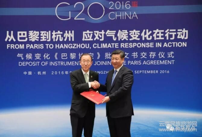 2016年9月3日,習(xí)近平向潘基文交存中國氣候變化《巴黎協(xié)定》批準(zhǔn)文書。新華社記者蘭紅光攝