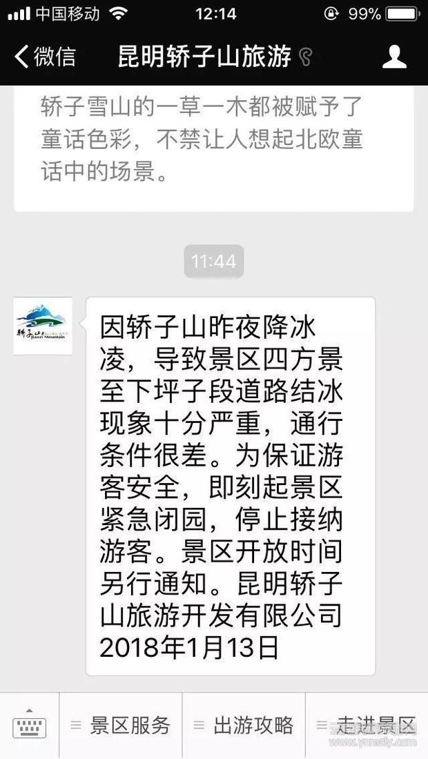 昨天消息:記者從“昆明轎子山旅游”微信公眾號獲悉,