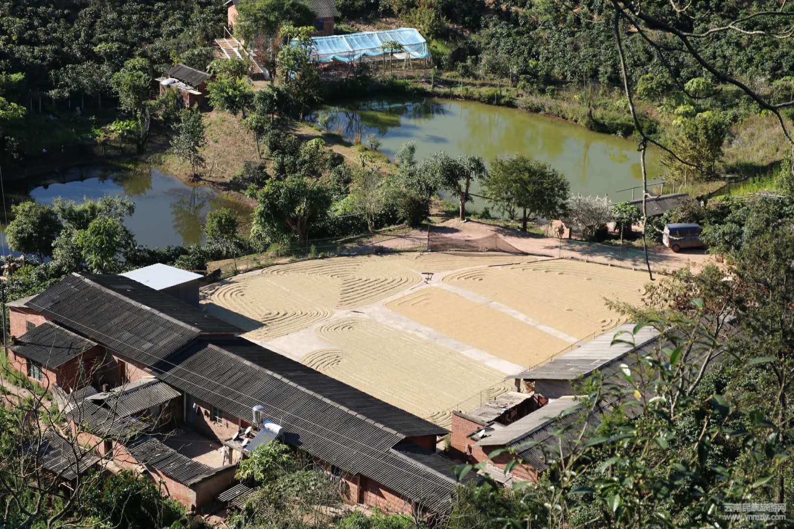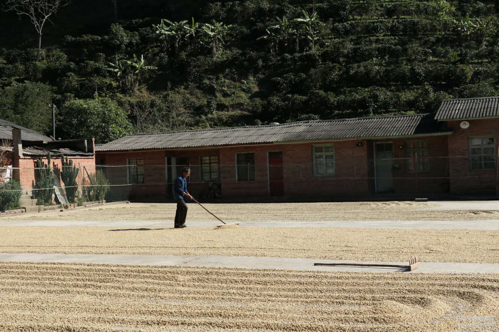 工人在翻曬咖啡豆
