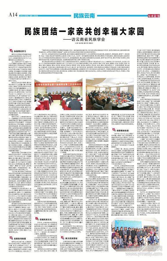 鑄牢中華民族共同體意識促進(jìn)云南各民族團(tuán)結(jié)進(jìn)步。2017年11月16日,云南省民族學(xué)會學(xué)習(xí)十九大精神座談會在昆明召開。