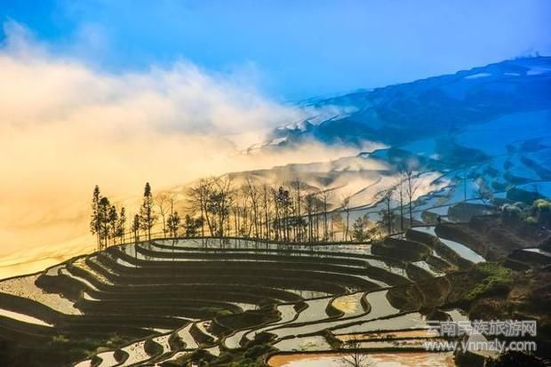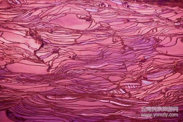 梯田的美離不開水的襯托,元陽梯田每年12月灌水,到了第二年1月正是最漂亮的時候。