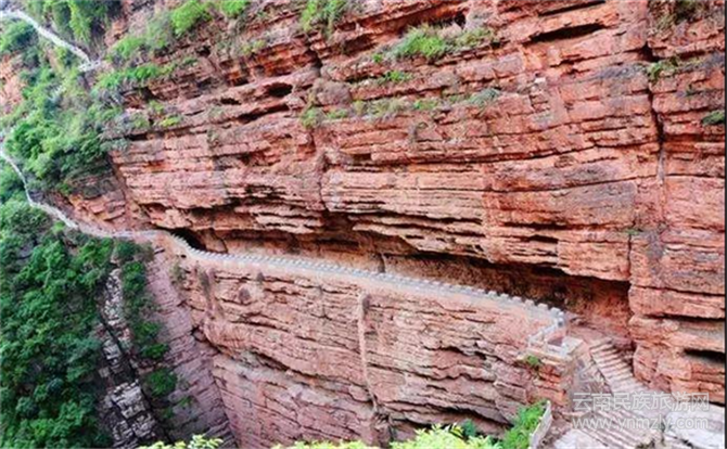 走過(guò)天生橋,站在懸崖的棧道上,雖然地是平的,但還是給人一種仿佛將要墜入崖底的感覺(jué)。