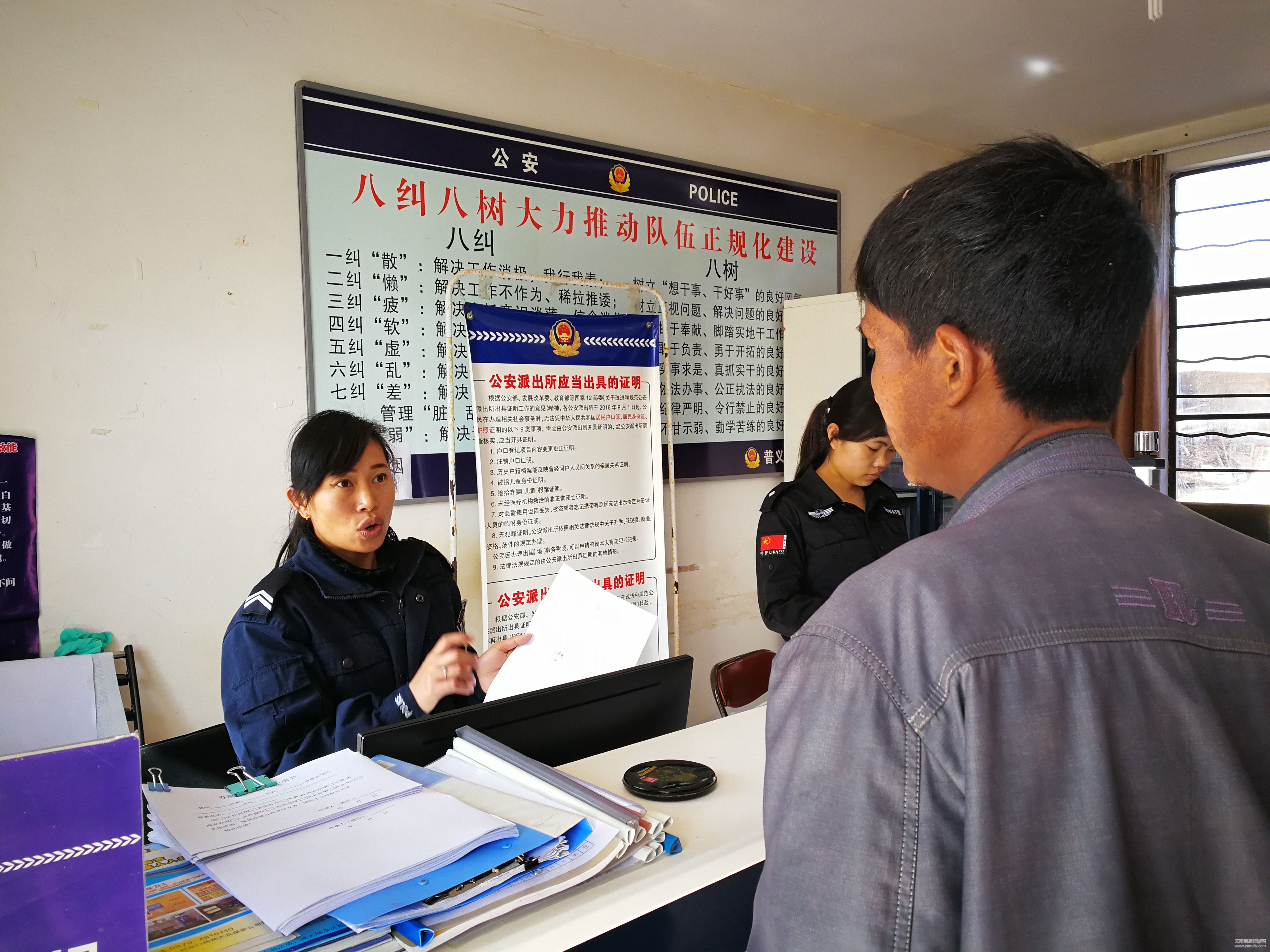 普義派出所距離寧洱縣城50多公里,警力及辦公資源有限。派出所10余平米的戶籍辦公區(qū)域里,雖然擁擠但時(shí)常“高朋滿座”,兩朵“警花”撐起了最繁忙的戶籍窗口。