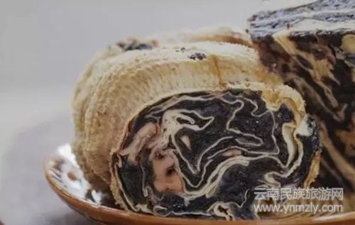 第一道經(jīng)典菜,就是太極八寶飯,是大理一位大廚從武當(dāng)山學(xué)來的。紫米和糯米,蒸熟后,拌上油和糖,在前一天擺成太極圖案,第二天早上,柴火灶上蒸2-3小時(shí),熟透了的八寶飯十分香糯。