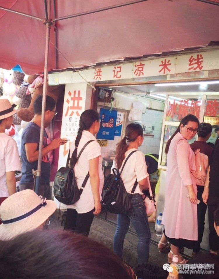 破舊但干凈的木房子里擠滿各種吃貨,上班族小文青穿皮草的貴婦回鄉(xiāng)的故人,只為一碗洪記涼品,旁邊阿姨嚷著要再吃一碗涼米線,阿姨老公說太涼了不要多吃。