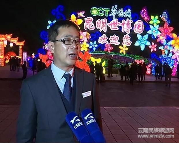 云南世博旅游景區(qū)投資管理有限公司總經(jīng)理 李勁松:有16米高的龍躍昆明,也有50米長(zhǎng)的二龍戲珠,還有一些反映十九大光輝,還有云南風(fēng)采的各種燈組,都呈獻(xiàn)給廣大游客和觀眾。