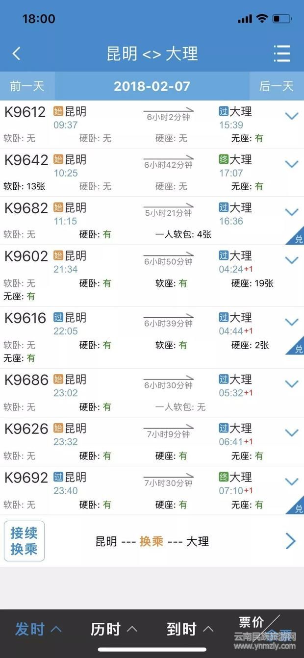 據(jù)“鐵路12306”客戶端顯示,目前昆明到大理的列車運行約6個多小時,年內(nèi)昆明至大理開行動車,將節(jié)約三分之二的時間。