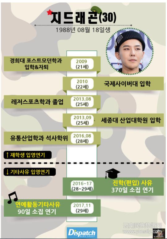 ● 網(wǎng)曝權志龍是碩士學歷 為延長入伍時間用多種辦法 ( 2018-02-06 )