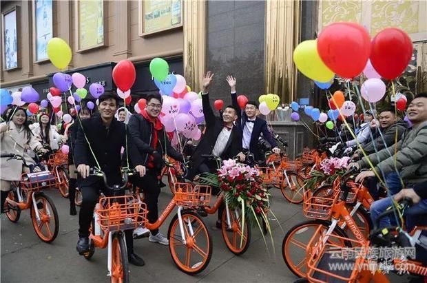 80人騎共享單車迎親 昆明街頭這場婚禮夠浪漫。