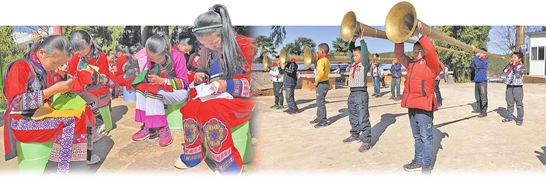 “長湖鎮(zhèn)維則青聯(lián)希望小學一半的學生都是彝族,課外活動和興趣班也都很特別。其他學校的孩子在興趣班是唱歌、跳舞、畫畫、打球,這里的孩子在興趣班卻是刺繡、舞獅、大鼓、摔跤、吹木葉、跳大三弦、吹過山號等,深受孩子們喜愛。”石林縣長湖鎮(zhèn)中心學校校長唐文才介紹,為了將傳統(tǒng)的彝族撒尼語傳承下去,學校自己還編寫了彝文教材,從三年級開始,每個年級都會開設一個彝語興趣班,每周教授孩子們彝族的語言和文字。“這些都是撒尼文化的寶貴財富,通過營造濃郁的民族文化氛圍,讓孩子們從小就在傳統(tǒng)文化的陪伴下成長,不僅激發(fā)興趣和學習動力,更重要的是,讓孩子們在學習中增強文化自信,將彝族優(yōu)秀的傳統(tǒng)文化傳承、發(fā)揚下去。”唐文才說。