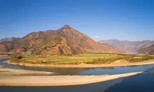 奔騰而下的長(zhǎng)江在石鼓鎮(zhèn)被海羅山崖阻擋后急轉(zhuǎn)成一個(gè)"V"字形大彎,折頭向東北流去,形成了聞名的萬(wàn)里長(zhǎng)江第一灣。