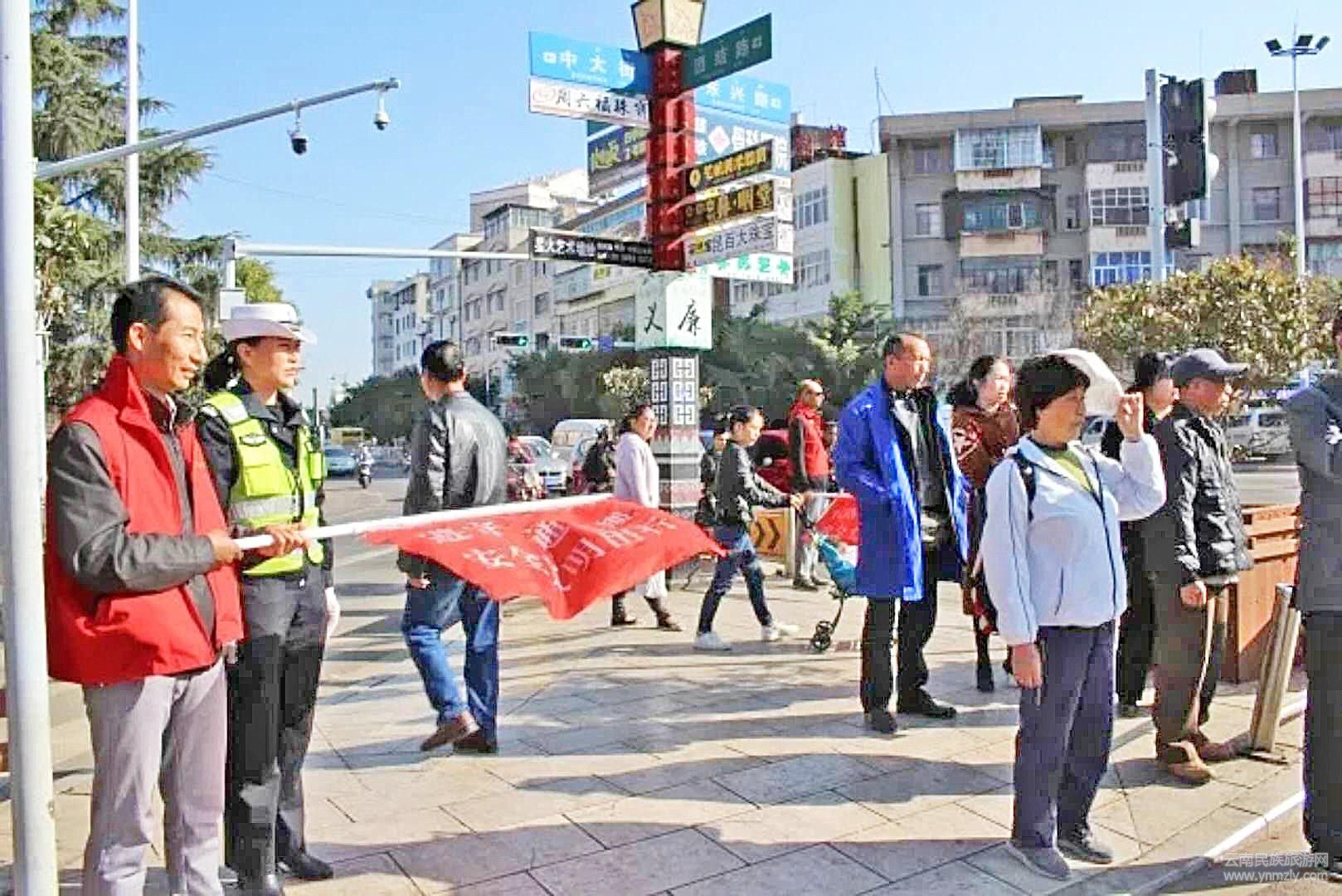 “大哥,您慢點(diǎn)騎電動(dòng)車,注意安全……”、“那位大姐,您多照看下孩子,不要闖紅燈……”3月5日上午,在楚雄市主城區(qū)的各個(gè)路口,身著紅色背心、手拿紅旗、頭戴紅色帽子的志愿者正在進(jìn)行文明交通勸導(dǎo)、引導(dǎo),這是楚雄州迎州慶學(xué)雷鋒志愿服務(wù)集中示范活動(dòng)暨楚雄市創(chuàng)建全國(guó)文明城市萬(wàn)人簽名活動(dòng)上的文明交通勸導(dǎo)行動(dòng),旨在進(jìn)一步倡導(dǎo)“奉獻(xiàn)、友愛、互助、進(jìn)步”的志愿者精神,傳播志愿服務(wù)理念,強(qiáng)化市民群眾文明出行意識(shí),營(yíng)造濃厚的文明出行氛圍,持續(xù)深化全國(guó)文明城市創(chuàng)建。