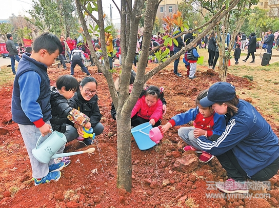 10日上午,在滇池星晨小區(qū)綠化帶,參加植樹活動的幼兒園師生、社區(qū)志愿者及公共單位工作人員300多人早早來到現(xiàn)場,大家分工合作、有條不紊,不到一個小時,綠化帶就呈現(xiàn)出一派綠色生機。