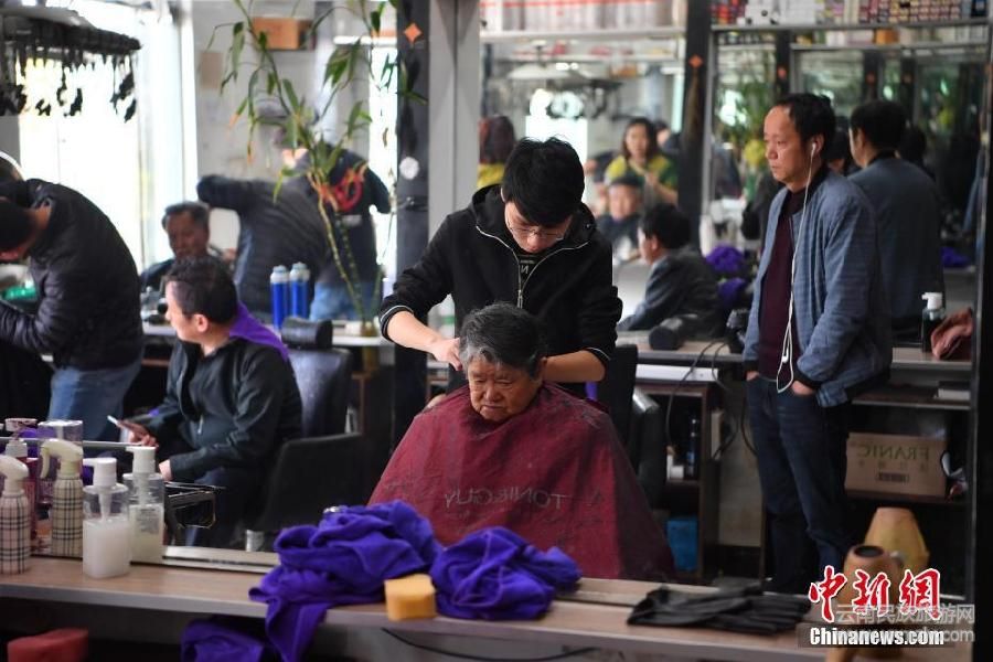 3月18日,市民正在剪發(fā)。當(dāng)日是農(nóng)歷二月初二,俗稱“龍?zhí)ь^”,民間有剃龍頭習(xí)俗,昆明街頭一美發(fā)室里擠滿剪頭的市民。中新社記者劉冉陽(yáng) 攝
