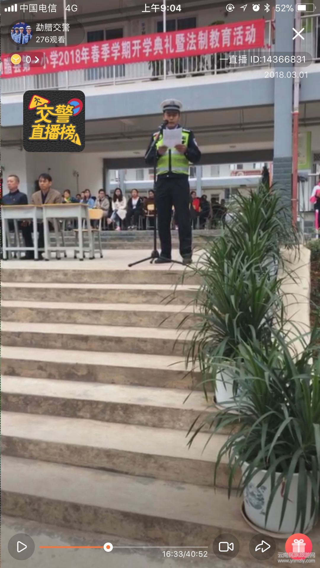 為做好開學(xué)期間廣大學(xué)生的交通安全教育工作,進一步增強師生的交通安全意識和自我防護意識,全力預(yù)防涉及學(xué)生的道路交通事故發(fā)生。3月1日,勐臘縣公安局交警大隊深入勐臘縣一小開展交通安全宣傳“大直播”活動,通過“一直播”官方直播平臺,對全校師生開學(xué)第一堂交通安全知識課進行同步直播。