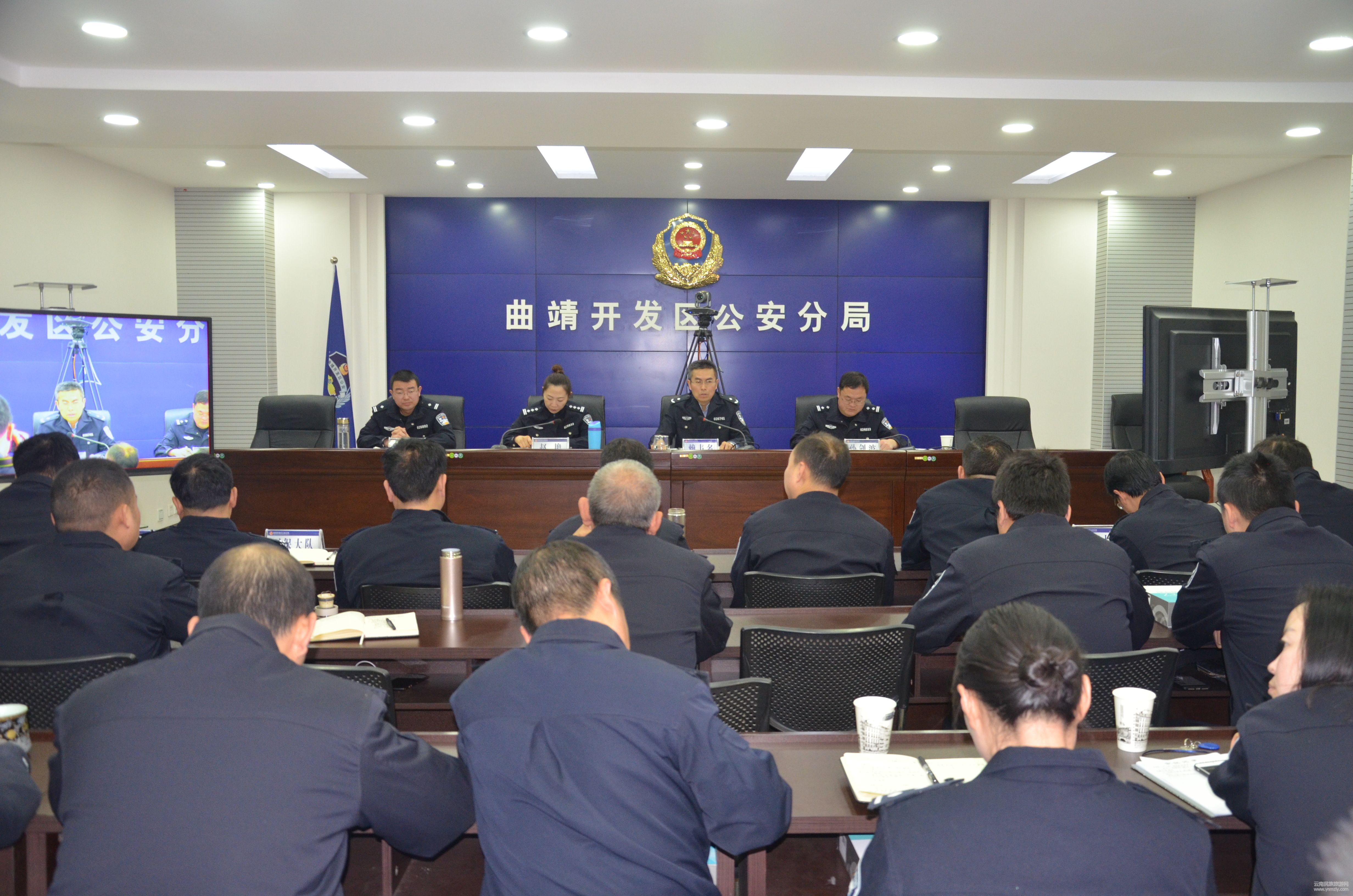 曲靖開發(fā)區(qū)管委會副主任、政法委書記、分局黨委書記、局長賴韋名出席會議并講話。分局黨委副書記、政委趙艷主持會議,分局班子成員、當日未值班的民警和輔警參加了會議。