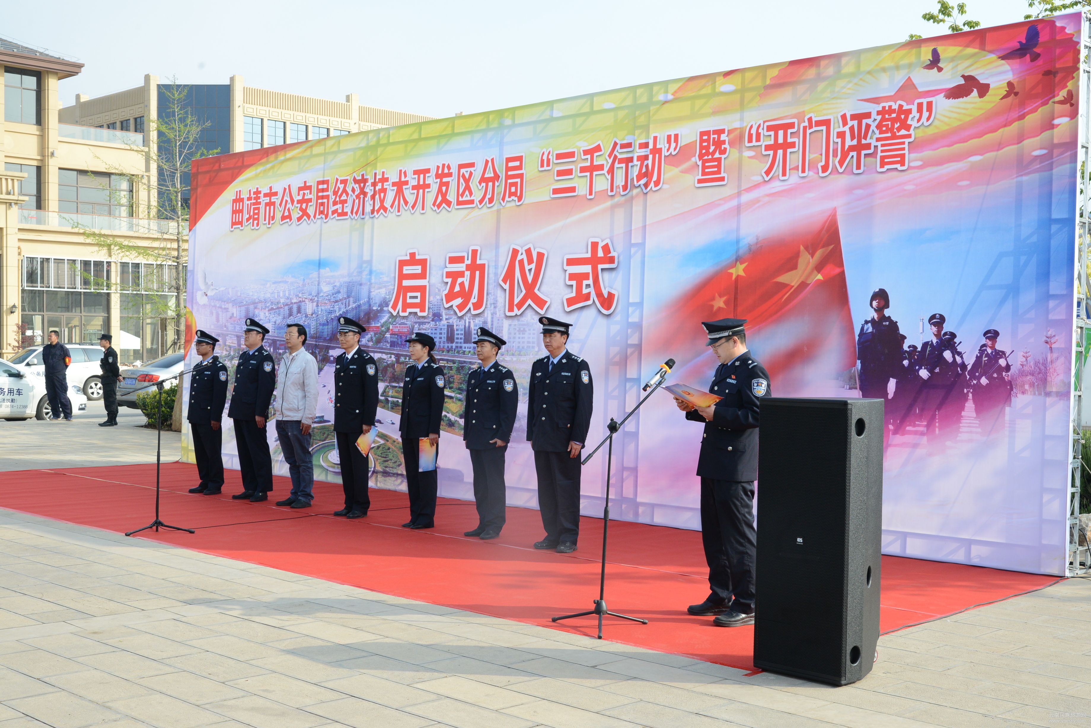 3月30日上午,曲靖市公安局開(kāi)發(fā)區(qū)分局“三千行動(dòng)”暨“開(kāi)門評(píng)警”啟動(dòng)儀式在曲靖外灘泰豐公園廣場(chǎng)舉行。