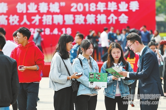 昨日,“放飛青春·創(chuàng)業(yè)春城”2018年畢業(yè)季昆明高校人才招聘暨政策推介會(huì)在云南民族大學(xué)呈貢校區(qū)舉行,300多家省內(nèi)外國(guó)有及非公企業(yè)為畢業(yè)生提供了6000多個(gè)工作崗位。
