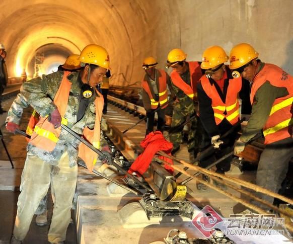 今年2月份祥和隧道安全貫通后,隧道承建單位中鐵十七局集中調(diào)派玉磨鐵路、鄭萬鐵路、成渝鐵路等項目的17個項目經(jīng)理、4個勞務(wù)隊1000多人晝夜開展隧道襯砌、無砟軌道等施工,徹底清除“攔路虎”,全線順利鋪通。