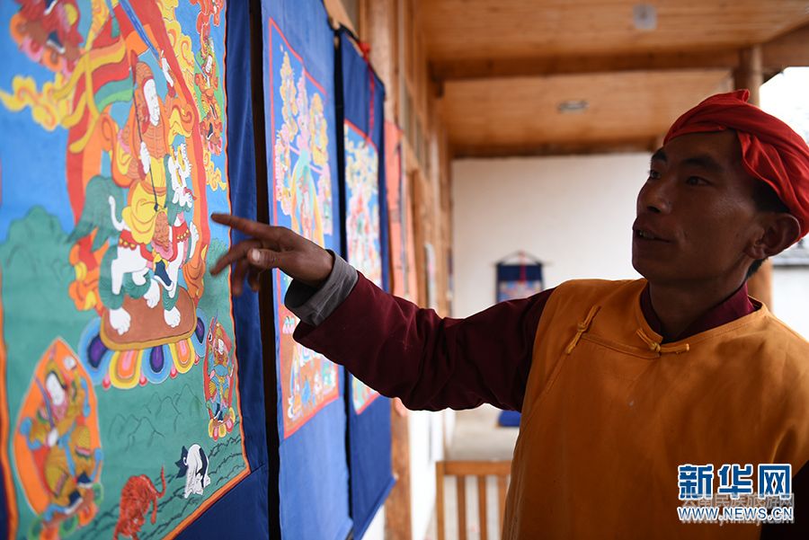 和嘉龍介紹東巴畫(huà)。新華網(wǎng) 李寧 攝