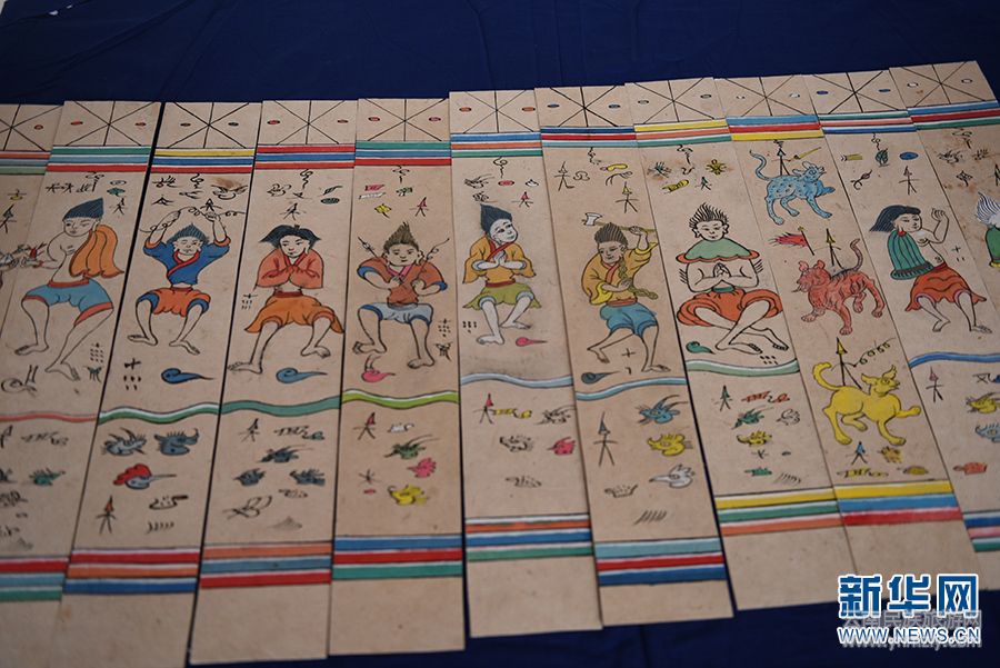 東巴紙牌畫(huà)。新華網(wǎng) 李寧 攝