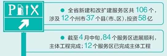 高速路服務(wù)區(qū)不僅是休息的驛站、服務(wù)的載體,更是旅游的名片、形象的窗口。一年前,我省把高速路服務(wù)區(qū)整治提升作為全省交通運(yùn)輸工作的重要任務(wù),切實(shí)抓緊抓好。省交通廳積極貫徹落實(shí)部署,研究制定高速公路服務(wù)區(qū)整治提升一年行動(dòng)計(jì)劃,深入開展改擴(kuò)建和新建工程、基礎(chǔ)設(shè)施提升、環(huán)境衛(wèi)生整治。根據(jù)省政府統(tǒng)一規(guī)劃,全省新建和改擴(kuò)建服務(wù)區(qū)共106個(gè),其中改擴(kuò)建80個(gè),新建26個(gè),涉及12個(gè)州市37個(gè)縣(市、區(qū)),投資概算58億元。