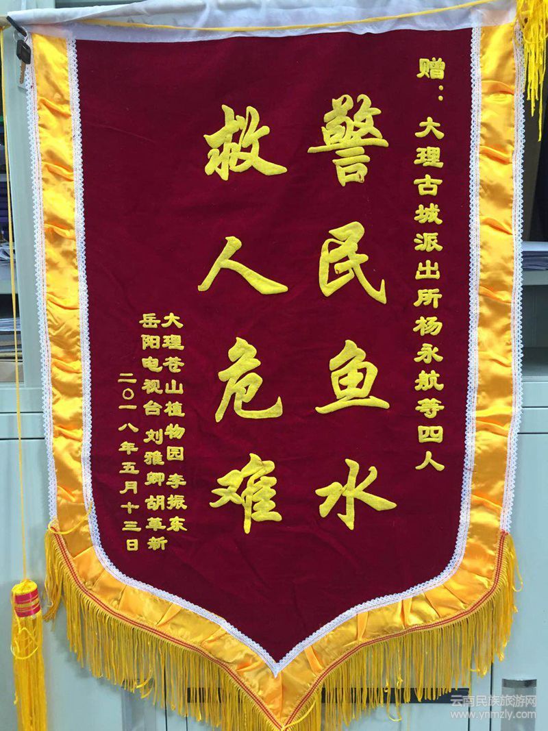 “感恩大理市公安局古城派出所及中和寺索道調(diào)度室的工作人員對(duì)我們的無(wú)私救援和誠(chéng)摯關(guān)愛(ài),你們的行為續(xù)寫了新時(shí)代警官和景點(diǎn)工作人員高度的社會(huì)責(zé)任感!”5月13日,古城派出所收到來(lái)自湖南岳陽(yáng)市劉氏夫婦的感謝信和錦旗。