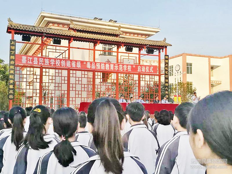 為進(jìn)一步貫徹落實(shí)《云南省青少年毒品預(yù)防教育三年規(guī)劃(2016-2018)》,為全縣青少年學(xué)生提供一個(gè)經(jīng)常化、常規(guī)化的禁毒法制教育場(chǎng)所。近日,墨江縣創(chuàng)建省級(jí)“毒品預(yù)防教育示范學(xué)校”啟動(dòng)儀式在民族學(xué)校舉行。縣禁毒辦、縣公安局、縣教育局、民族學(xué)校相關(guān)領(lǐng)導(dǎo)及該校初中部2000余名師生參加了啟動(dòng)儀式。