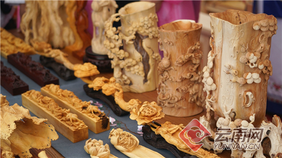 同時,薈萃劍川民間絕活、手工工藝,劍川木雕、木制瓢、傳統(tǒng)鐵具鍛造、竹篾編、木蒸籠、白族土陶、白族布扎、民間兒童玩具、紙扎制作、梅園石雕等數(shù)十位民間藝人現(xiàn)場展示制作過程,并舉辦成品微型拍賣會;搭建展位供127家省內(nèi)外客商進行特色文旅產(chǎn)品展銷,展銷商品有仿古家具類、陳設類、旅游紀念品、禮品類等,以及木雕、根雕、石雕、土陶、刺繡、布扎等劍川當?shù)靥厣唐罚渲杏衼碜詣Υū就恋钠髽I(yè),也有從南博會后慕名而來參展的東南亞企業(yè)、客商。