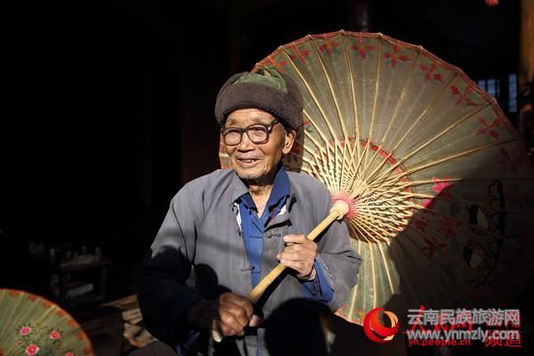 騰沖非遺傳承人鄭映海和他制作的油紙傘 人民網(wǎng) 薛丹 攝