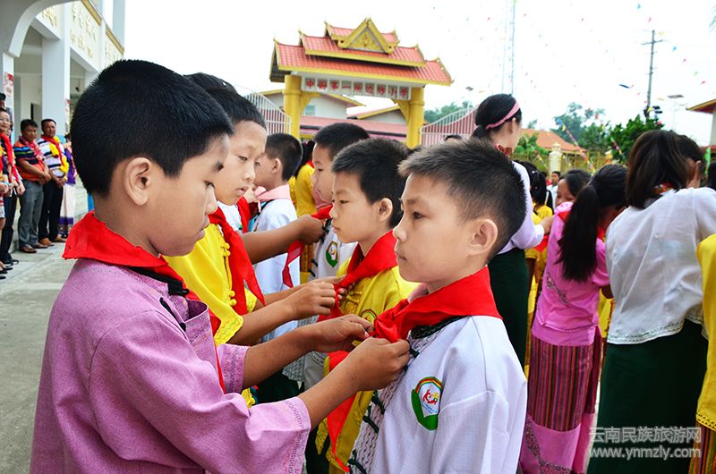 在少先隊入隊儀式上,老隊員為新隊員佩戴紅領(lǐng)巾,輔導(dǎo)員帶領(lǐng)新隊員宣誓。隨即對優(yōu)秀少先隊員、優(yōu)秀班干部、三好學(xué)生等進行表彰。大家一起欣賞了由銀井邊檢站和銀井小學(xué)帶來的精彩節(jié)目。中緬雙方學(xué)生、家長、來賓、邊檢站的官兵們進行了拉拔河等游戲。緬甸的同學(xué)們都超水平發(fā)揮,大家給他們送去了熱烈的掌聲。同學(xué)們跑著笑著,沉浸在歡樂的海洋。通訊員 楊騰榮(文章來源環(huán)球游報2018年6月8日第1143期A5版)