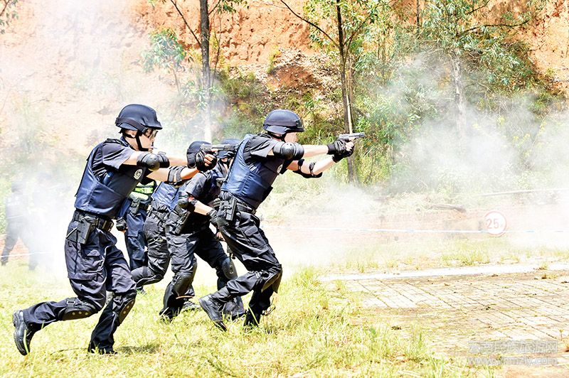 本次跨區(qū)域拉動演練為期2天,來自楚雄州10縣市公安局特警,在三公里武裝越野、實戰(zhàn)對抗射擊、暴恐事件處置3個科目中進行激烈角逐。