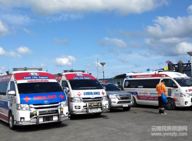 目前,查龍碼頭是搜救主要展開作業(yè)的地方,設(shè)有營救指揮部,內(nèi)部配有醫(yī)護(hù)人員、旅游警察、海軍、陸軍,外面還有5輛救護(hù)車待命。當(dāng)天普吉島天氣晴好,站在碼頭可看到大皇帝島,乘快艇二十分鐘便可抵達(dá)事發(fā)地附近。