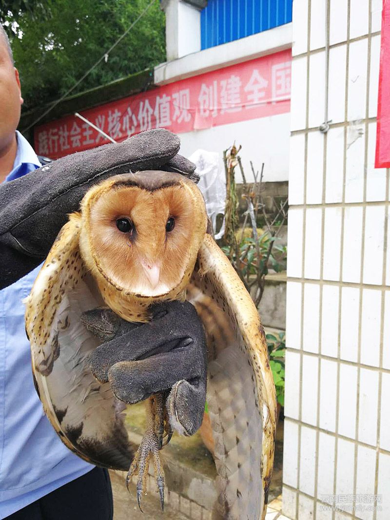 經民警查找相關資料,確定這只猴子面相的鳥學名叫草鸮,又稱猴面鷹,是一種中型猛禽,屬國家二級保護野生動物。7月1日上午,民警將這只小動物送到昆明市瀕危動植物收容拯救中心進行救治。
