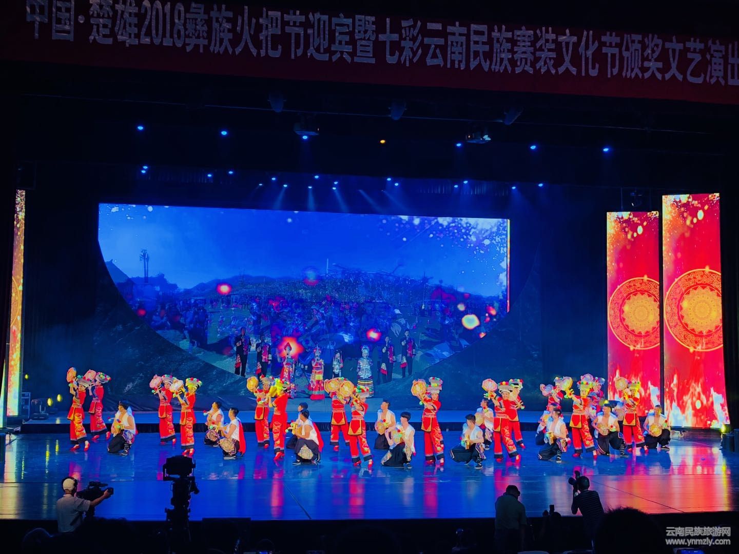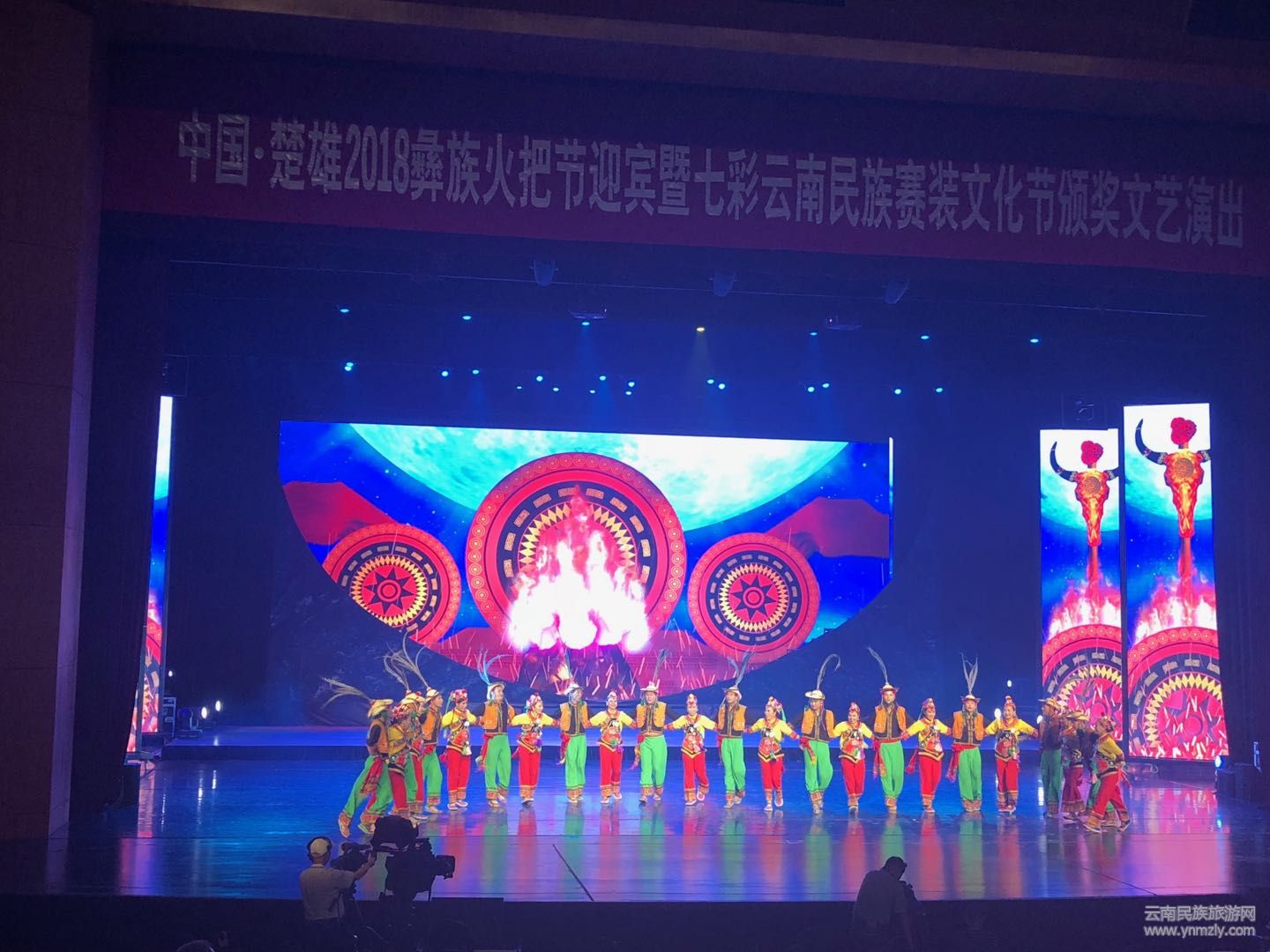 4日晚,七彩云南2018民族賽裝文化節(jié)頒獎(jiǎng)暨中國·楚雄彝族火把節(jié)迎賓文藝演出在楚雄彝州大劇院舉行。