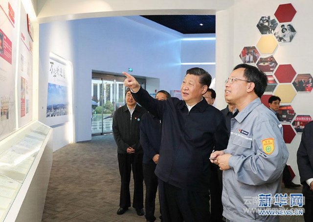 2018年4月24日下午,習(xí)近平在三峽大壩左岸電站考察。圖片來源:新華社