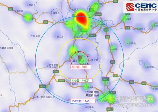 云南網(wǎng)訊 8月13日凌晨01時(shí)44分24秒,云南玉溪市通海縣發(fā)生5.0級(jí)地震,震中位于北緯度24.19°,東經(jīng)度102.71°,震源深度7千米。震中距通海縣10公里、距江川區(qū)12公里、距華寧縣22公里、距紅塔區(qū)25公里、距峨山彝族自治縣31公里,距玉溪市24公里,距昆明市95公里。 據(jù)移動(dòng)人口大數(shù)據(jù)分析,震中20公里范圍內(nèi)人口數(shù)約50萬(wàn),50公里范圍內(nèi)約188萬(wàn),100公里范圍內(nèi)約1140萬(wàn)。