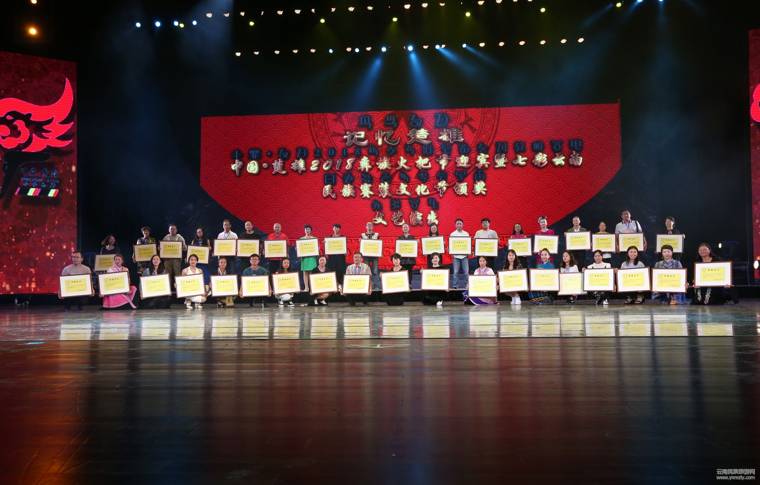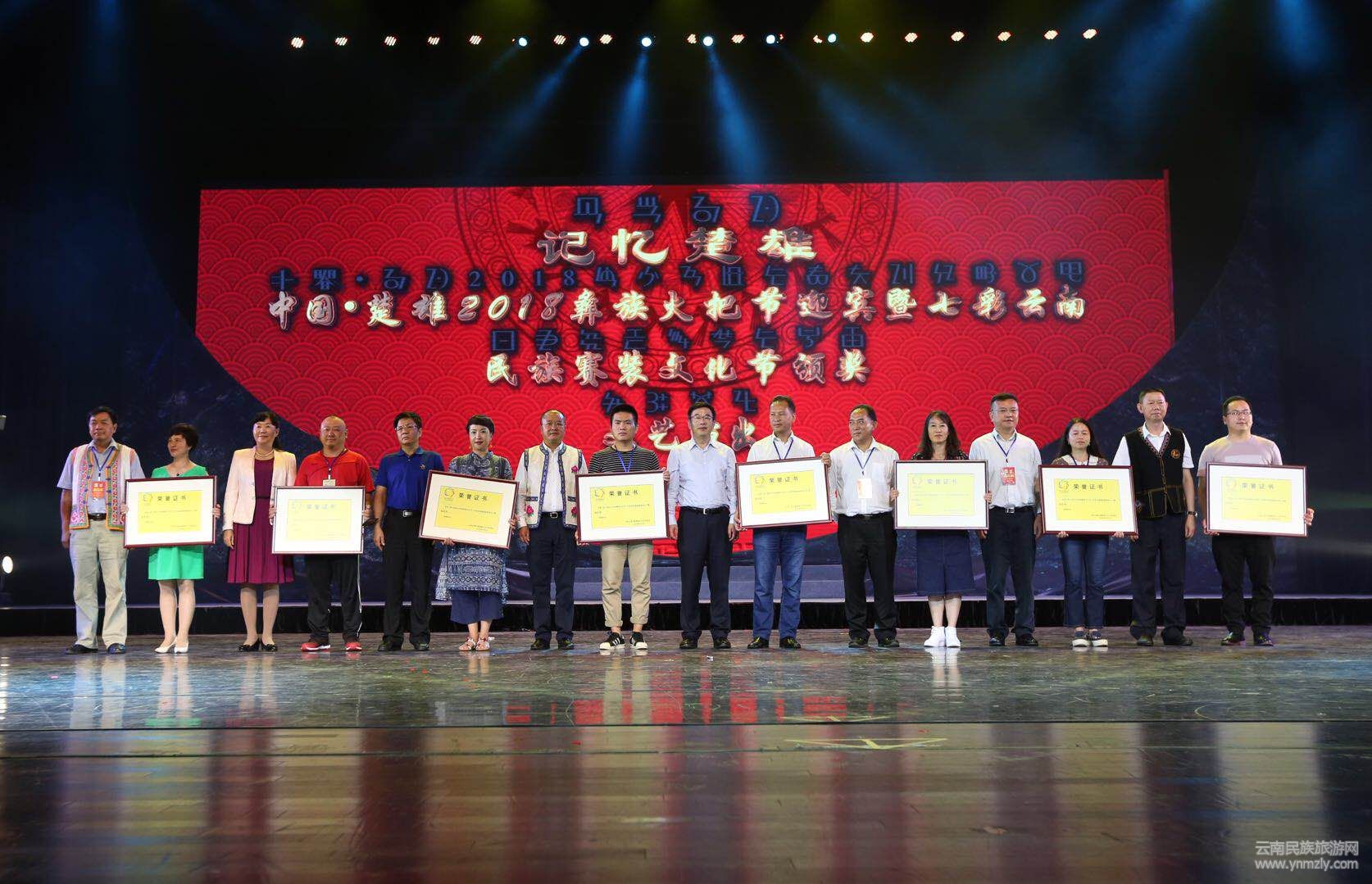 七彩云南2018民族賽裝文化節(jié)頒獎暨中國·楚雄彝族火把節(jié)迎賓文藝演出在楚雄彝州大劇院舉行。云南民族服裝服飾設(shè)計大賽經(jīng)過3天競技圓滿落幕,評選出十佳傳統(tǒng)民族服裝服飾、十佳創(chuàng)意民族服裝服飾、十佳民族服裝服飾設(shè)計師、十佳民間刺繡(布藝)能手四個別類的獎項(xiàng)及8個組織獎、8個優(yōu)秀組織獎。
