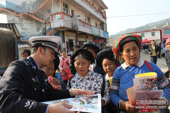 每到一個(gè)街天,“趕集警組”都用少數(shù)民族群眾能聽得懂的語言,以案說法,教育廣大群眾抵制各類道路交通違法行為。引導(dǎo)群眾自覺遵守道路交通安全法,從源頭上消除道路交通安全隱患。