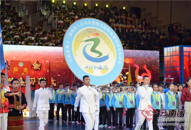 開幕式上,伴隨著雄勁剛健的運(yùn)動(dòng)員進(jìn)行曲,參賽代表隊(duì)的運(yùn)動(dòng)員們昂首闊步,以精神飽滿的狀態(tài)步入會(huì)場(chǎng)。據(jù)介紹,本屆殘運(yùn)會(huì)共設(shè)田徑、游泳、舉重、乒乓球、羽毛球、板鈴球、籃球、足球等8個(gè)大項(xiàng)308個(gè)小項(xiàng),預(yù)計(jì)將產(chǎn)生324枚金牌。本屆殘運(yùn)會(huì)有來(lái)自云南省各州市、華夏中專和臨滄市二團(tuán)共18個(gè)代表團(tuán)960名運(yùn)動(dòng)員參賽。近3000名運(yùn)動(dòng)員、教練員、裁判員和工作人員匯聚臨滄,參賽人數(shù)和賽會(huì)規(guī)模是歷屆省殘運(yùn)會(huì)之最。