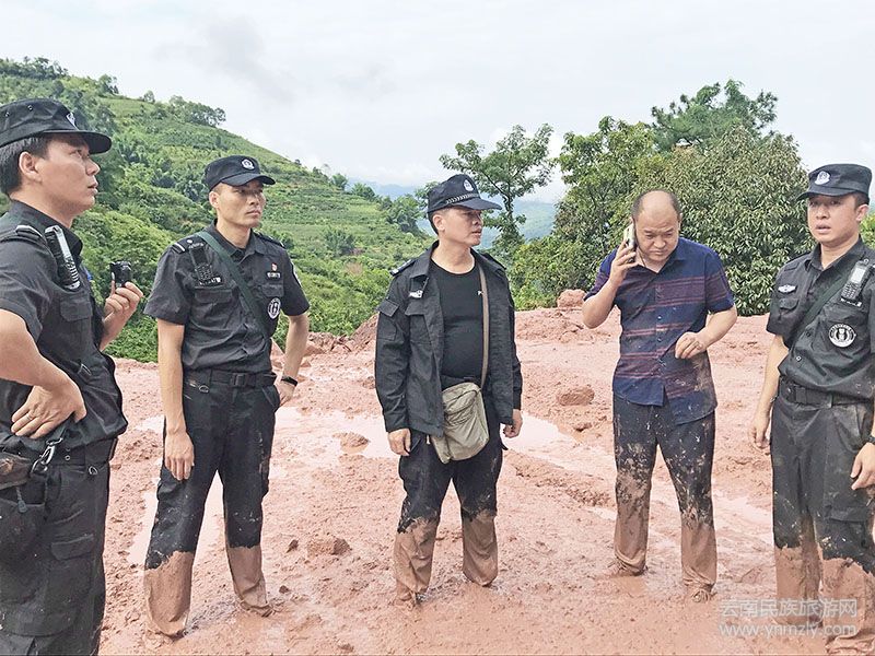通關派出所黨支部立即聯(lián)系當地村干部,一面組織群眾搶修道路,一面讓救援民警棄車徒步前進,以最快的速度,第一時間趕到災區(qū)現(xiàn)場。