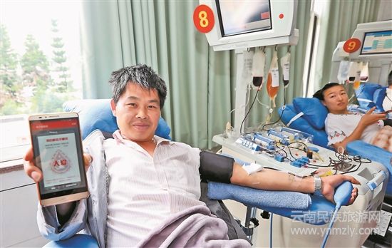 針頭扎進程玉華胳膊的靜脈里,血液從他的手臂緩緩流出,進入血液成分分離機……得知“互聯(lián)網(wǎng)+昆明無償獻血服務(wù)平臺”今天上線運行,程玉華馬上拿出手機登錄APP平臺申請無償獻血榮譽證。