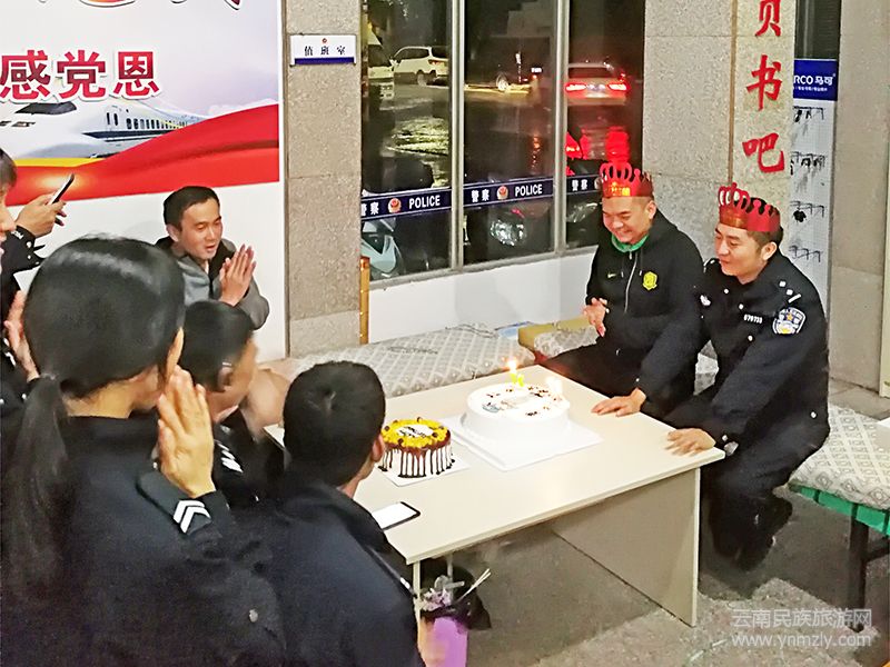 “祝你生日快樂!祝你生日快樂……”10月10日22時(shí),一首《生日祝福歌》在易門縣公安局龍泉派出所值班室響起,在戰(zhàn)友們的祝福聲中,兩名同天生日又同天值班的民警在值班崗位上度過了一個(gè)難忘的生日。