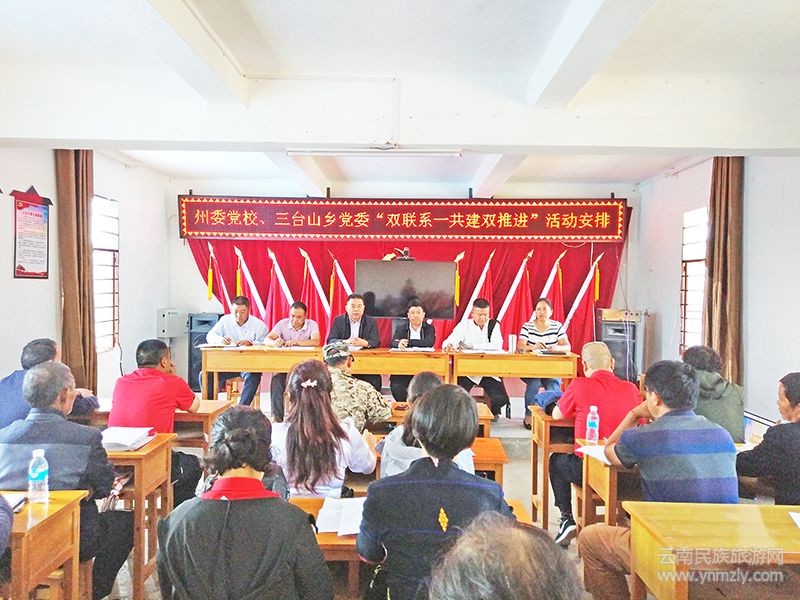 為認(rèn)真貫徹落實(shí)黨的十九大精神和德宏州委州政府關(guān)于進(jìn)一步加強(qiáng)“掛包幫”“轉(zhuǎn)走訪”定點(diǎn)扶貧工作,“雙聯(lián)系一共建雙推進(jìn)”相關(guān)要求,扎實(shí)做好“掛包幫”“轉(zhuǎn)走訪”工作,德宏州委黨校聯(lián)合芒市三臺(tái)山德昂族鄉(xiāng)黨委政府,充分利用開(kāi)展第36個(gè)民族團(tuán)結(jié)月宣傳活動(dòng)之際,結(jié)合實(shí)際開(kāi)展了一系列的活動(dòng)。首先是請(qǐng)州委黨校的教授開(kāi)展了民族團(tuán)結(jié)道德大講堂講座;其次是召集鄉(xiāng)黨委政府班子、村兩委和建檔立卡戶共同對(duì)脫貧攻堅(jiān)效果結(jié)合實(shí)際,認(rèn)真做了分析研討;第三是按照有工作方案、有結(jié)對(duì)共建協(xié)議、有活動(dòng)記錄,有脫貧攻堅(jiān)效果的目標(biāo),對(duì)“雙聯(lián)系一共建雙推進(jìn)”做了安排。同時(shí),還開(kāi)利用發(fā)放宣傳單、張榜宣傳欄開(kāi)展了反邪教宣傳。活動(dòng)中,還邀請(qǐng)了德宏州創(chuàng)建全國(guó)民族團(tuán)結(jié)進(jìn)步示范州領(lǐng)導(dǎo)小組辦公室、德宏州民族宗教事務(wù)局相關(guān)領(lǐng)導(dǎo)參加了活動(dòng)。在活動(dòng)間隙,德宏州委黨校的全體教職工還到各自的掛鉤戶家中走訪,了解掛鉤戶的生產(chǎn)生活情況。