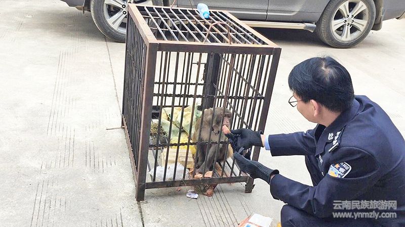 日前,廣南縣森林公安局蓮城派出所接到轄區(qū)護林員電話報稱蓮城鎮(zhèn)老龍村來了一只搗蛋猴子,現(xiàn)被村民抓著了,請求處理。