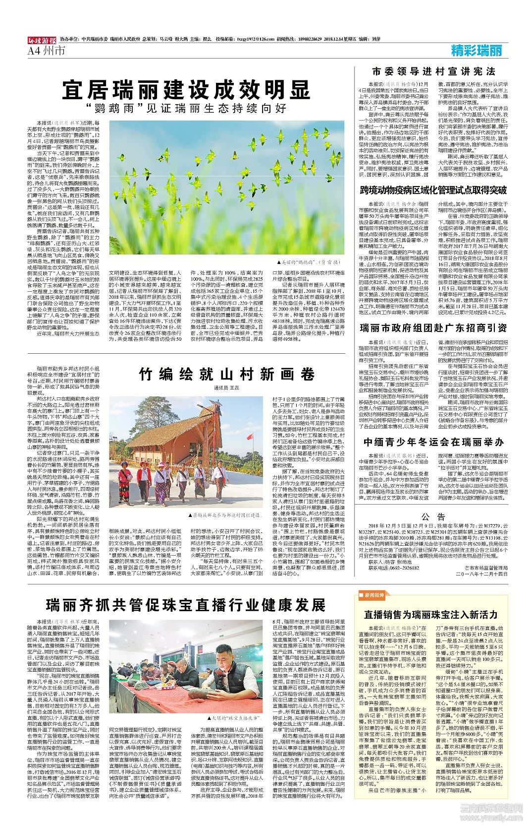 近年來(lái),瑞麗市大力開展生態(tài)文明建設(shè),生態(tài)環(huán)境得到修復(fù),人居環(huán)境得到提升。這座中緬邊境上的小城變得越來(lái)越美,越來(lái)越宜居。記者從瑞麗市環(huán)保局了解到,2018年以來(lái),瑞麗市狠抓生態(tài)文明建設(shè),下大力氣開展環(huán)保工作。1至11月,環(huán)保局共出動(dòng)執(zhí)法人員320余人次,檢查企業(yè)110余家,立案查處16件環(huán)境違法案件,下達(dá)《責(zé)令改正違法行為決定書》28份,依法責(zé)令26家企業(yè)整改環(huán)境違法行為,共受理各類環(huán)境信訪投訴50件,處理率為100%,結(jié)案率為100%。與此同時(shí),環(huán)保局完成2825個(gè)污染源的逐一清理核查,建立完成包括365家工業(yè)企業(yè)單位、15個(gè)集中式污染治理設(shè)施、4個(gè)生活源鍋爐、8個(gè)入河排污口、220個(gè)規(guī)模化畜禽養(yǎng)殖場(chǎng)的清查庫(kù),并通過(guò)上級(jí)普查機(jī)構(gòu)的質(zhì)量核查。環(huán)保局大力推進(jìn)農(nóng)村垃圾收集處理、污水收集處理、衛(wèi)生公廁等工程建設(shè)。目前,全市已經(jīng)完成中緬銀井、芒秀農(nóng)村環(huán)境綜合整治示范項(xiàng)目,弄島口岸、姐相鄉(xiāng)國(guó)境沿線農(nóng)村環(huán)境連片綜合整治項(xiàng)目。