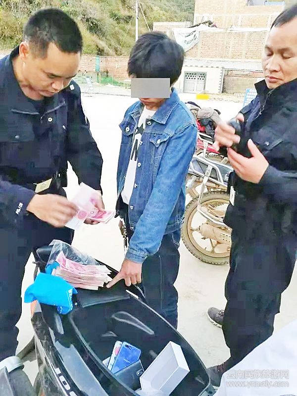 民警一邊叫何某田想辦法穩(wěn)住該人,一邊迅速趕往加油站。在者兔加油站,民警當即確定了該人身份正是之前民警研判的盜竊何某唐家的犯罪嫌疑人李某,并在現(xiàn)場從犯罪嫌疑人李某的摩托車后備箱中繳獲贓款35711元及4部手機。